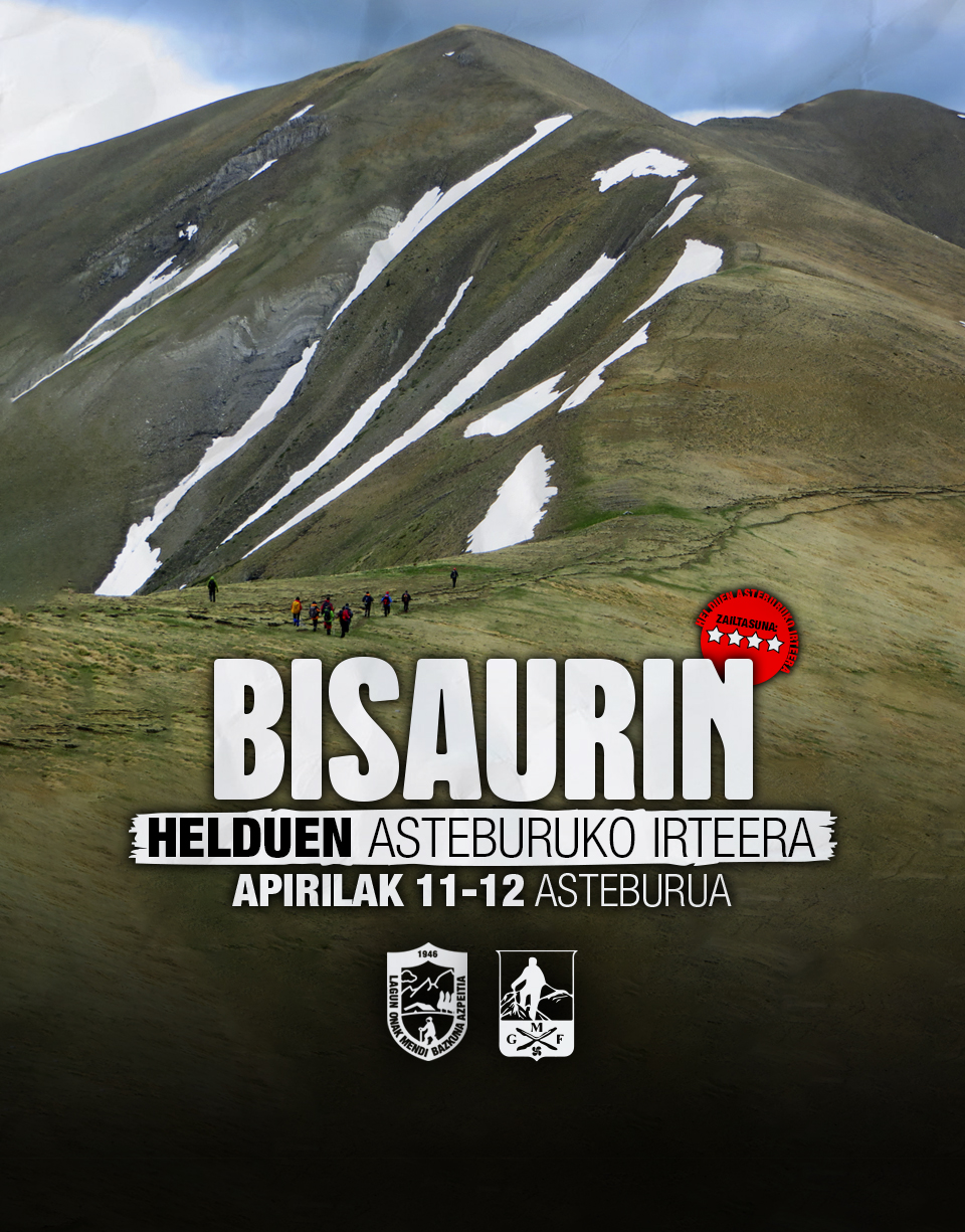 - Larunbata: 15 km, +1.100 m. Lizarako aterpea (1.540 m) – Collado Foratón (1.970 m) - Bisaurin (2.670 m) – Gabarditoko aterpea (1.280 m).